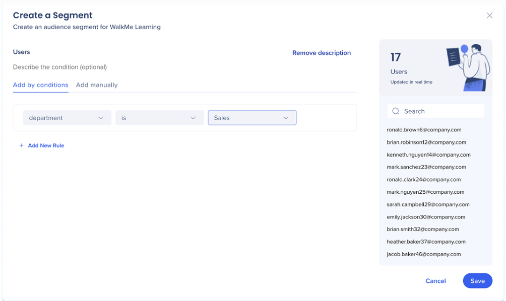 Ciblez les bons apprenants avec le bon contenu. Utilisez le Gestionnaire de segments pour définir des groupes d’utilisateurs en fonction de leurs rôles, comportements ou autres critères afin de leur offrir une expérience personnalisée.