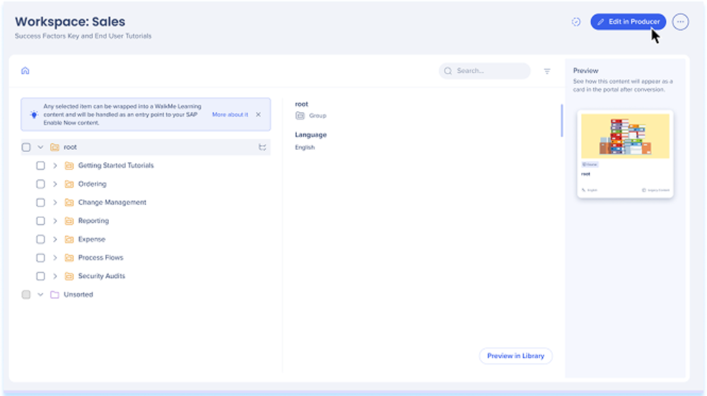 Intégrez ce contenu à votre environnement d’apprentissage. Au lieu de tout créer de zéro, importez le contenu SAP Enable Now existant, convertissez-le en microformations et diffusez-le directement via le portail.